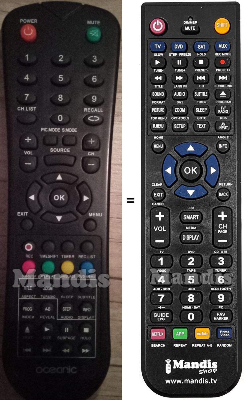 This remote control fully replaces your OCEALED215DVD2 and offers all the functions of the original.