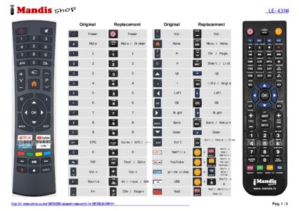 This remote control fully replaces your DVB-T2S2C (LE-43N4) and offers all the functions of the original.