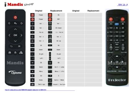replacement remote control RM-14-A for Optoma.