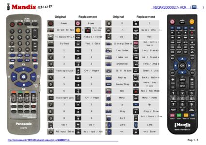 Below, we will show you the correspondence between each button on the original remote control and the button that performs the same function on the replacement remote control. In some cases, you may need to press the SHIFT key before pressing another button to perform certain actions. These additional functions are often not widely used and are included to facilitate understanding of the replacement remote control, or because the original remote control has more buttons than its equivalent.
