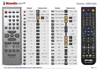 • SHIFT key: Some buttons on the replacement remote control require pressing the SHIFT key before pressing another button to perform certain functions. If a button on the original remote control requires the SHIFT key, it will be indicated in the image.