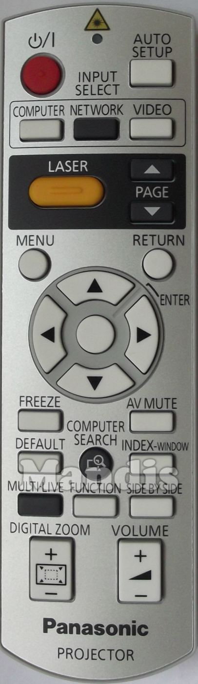 Original remote control N2QAYB000305 used for Projectors for the brand Panasonic.