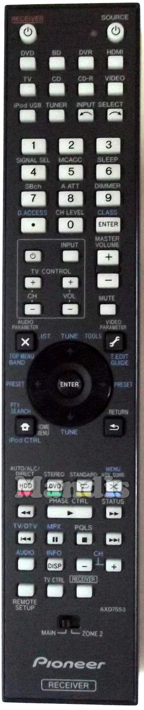 original remote control AXD7553 used for av receiver for the brand Pioneer. This is an original remote control.