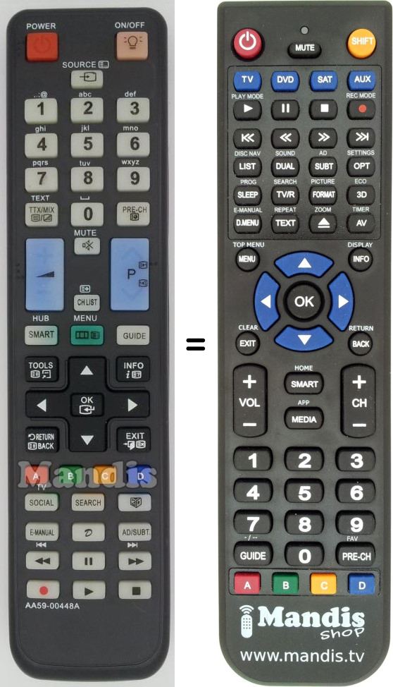 This remote control fully replaces your TM1060 (AA59-00448A) and offers all the functions of the original.