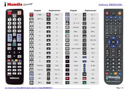 A document is included to help you use the new remote control easily, showing the button correspondence.