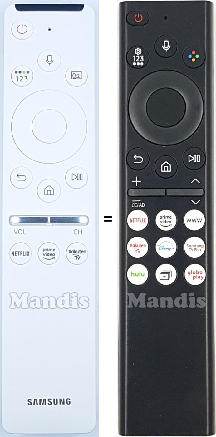 Modernize your Samsung Smart TV with this elegant and functional remote control. It offers complete control and comfort thanks to its voice technology and ergonomic design. It works perfectly with all Samsung TVs with Bluetooth, ensuring a reliable and powerful connection. Featuring direct access buttons for your favorite apps like Netflix and Prime Video.