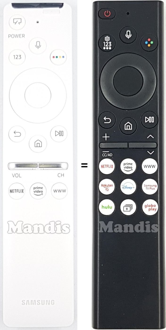 Modernize your Samsung Smart TV with this elegant and functional remote control. It offers complete control and comfort thanks to its voice technology and ergonomic design. It works perfectly with all Samsung TVs with Bluetooth, ensuring a reliable and powerful connection. Featuring direct access buttons for your favorite apps like Netflix and Prime Video.