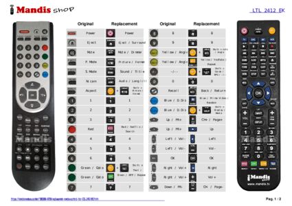 Below, we will show you the correspondence between each button on the original remote control and the button that performs the same function on the replacement remote control. In some cases, you may need to press the SHIFT key before pressing another button to perform certain actions. These additional functions are often not widely used and are included to facilitate understanding of the replacement remote control, or because the original remote control has more buttons than its equivalent.