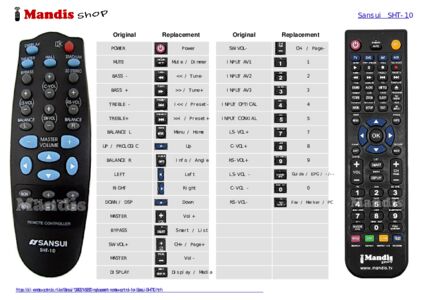 Home > Brands > Remote controls Sansui > Remote control for SANSUI SH-T10
