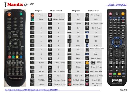 This remote control fully replaces your LD215-240FDDBU and offers all the functions of the original.