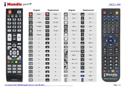 This remote control fully replaces your SRC11-49A and offers all the functions of the original.