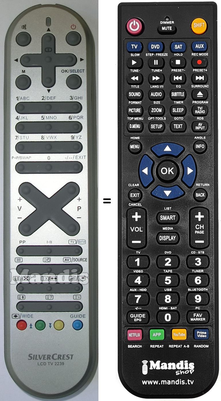 Remote control to replace the original LCDTV2239 (20457814) and all its functions.
