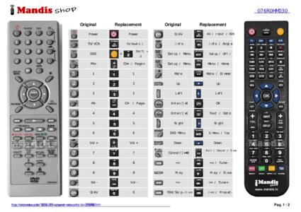 Below, we will show you the correspondence between each button on the original remote control and the button that performs the same function on the replacement remote control. In some cases, you may need to press the SHIFT key before pressing another button to perform certain actions. These additional functions are often not widely used and are included to facilitate understanding of the replacement remote control, or because the original remote control has more buttons than its equivalent.