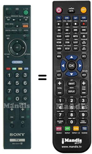 This remote control fully replaces your RM-ED011 (148077811) and offers all the functions of the original.