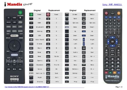 This remote control fully replaces your RMT-AH401U (149335411) and offers all the functions of the original.