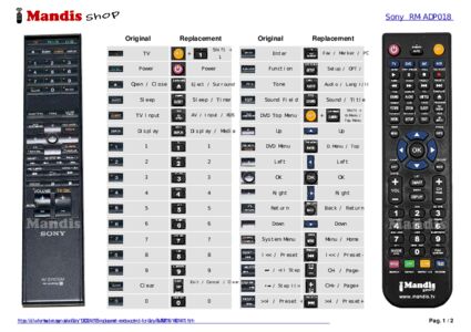 This remote control replaces most of the functions of your RM-ADP018 (148014411). It is not a universal remote control, but a copy with most of the buttons and functions of your original.