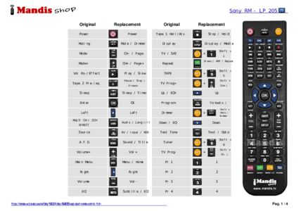 When we send the remote control, we also send a document with the correspondence of the keys between the replacement and the original remote controls which allows you to know how to perform the functions of the original remote. Sometimes it is available on the web so you can download it.