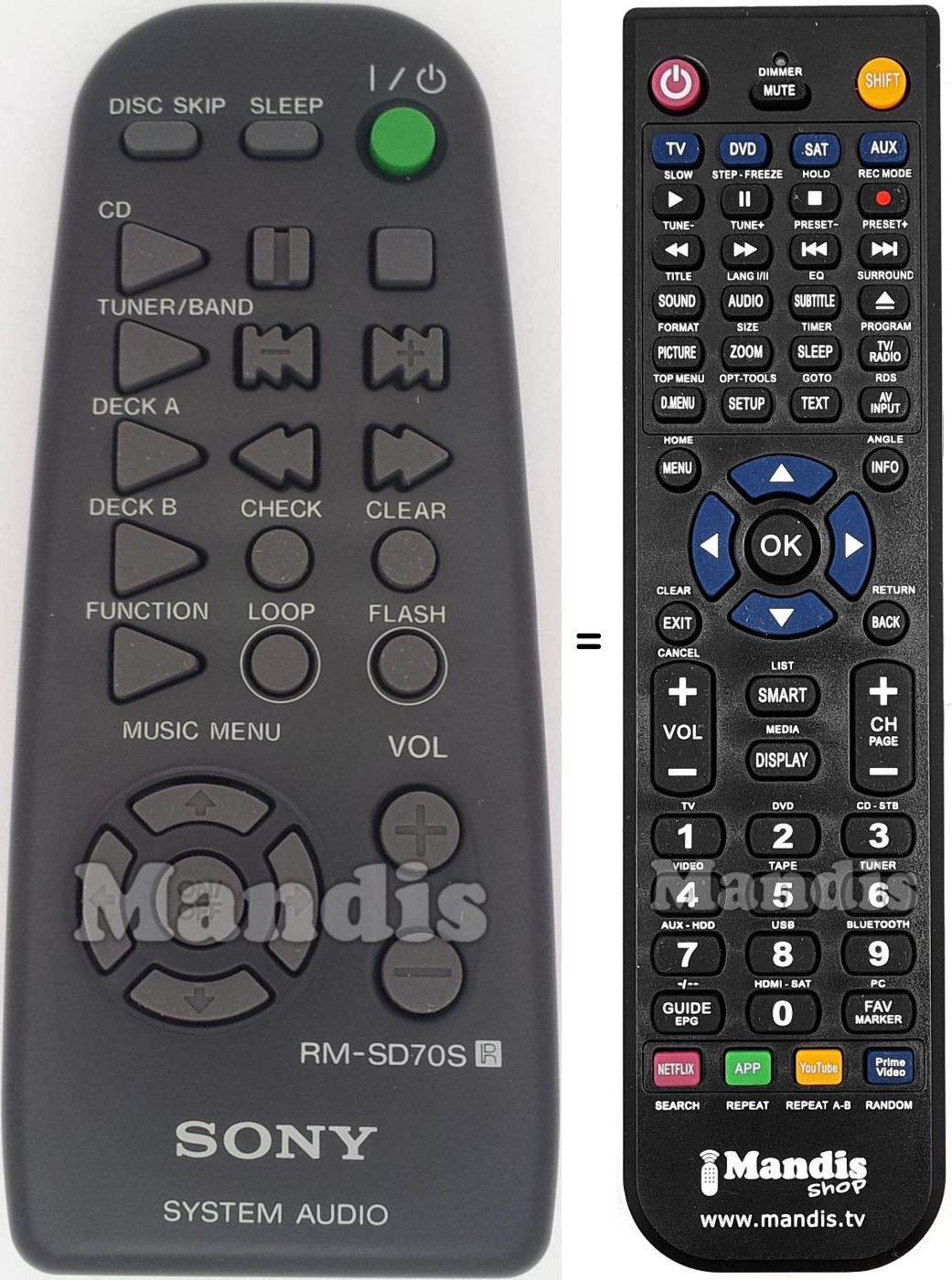 This remote control fully replaces your RMSD70S and offers all the functions of the original.