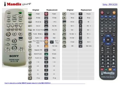This remote control fully replaces your RM-SC 31 (A1237274A) and offers all the functions of the original.