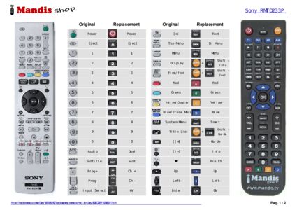 This remote control fully replaces your RMT-D233P (147965911) and offers all the functions of the original.