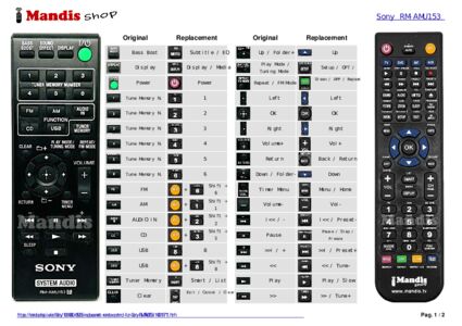 Attention: This remote control replaces most of the functions of your RM-AMU153 (149016711), but not all. The main functions are included, but some secondary functions may not be available.