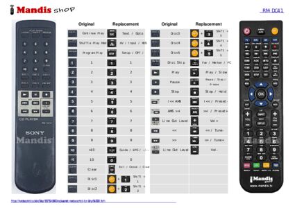 Below, we will show you the correspondence between each button on the original remote control and the button that performs the same function on the replacement remote control. In some cases, you may need to press the SHIFT key before pressing another button to perform certain actions. These additional functions are often not widely used and are included to facilitate understanding of the replacement remote control, or because the original remote control has more buttons than its equivalent.