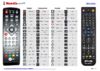 Standby, Subtitle, Audio, Mute, <<, >>, Play / Pause, Stop, I<<, >>I, Menu, Exit, Up / CH+, Down / CH-, Right / Vol+, Left / Vol-, OK, Record, Timeshift, , Recall, 1, 2, 3, 4, 5, 6, 7, 8, 9, 0, , Device, File, Repeat, Teletext, Mosaic, TV/Radio, Info, Red, Green, Yellow, Blue