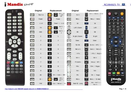 Below, we will show you the correspondence between each button on the original remote control and the button that performs the same function on the replacement remote control. In some cases, you may need to press the SHIFT key before pressing another button to perform certain actions. These additional functions are often not widely used and are included to facilitate understanding of the replacement remote control, or because the original remote control has more buttons than its equivalent.