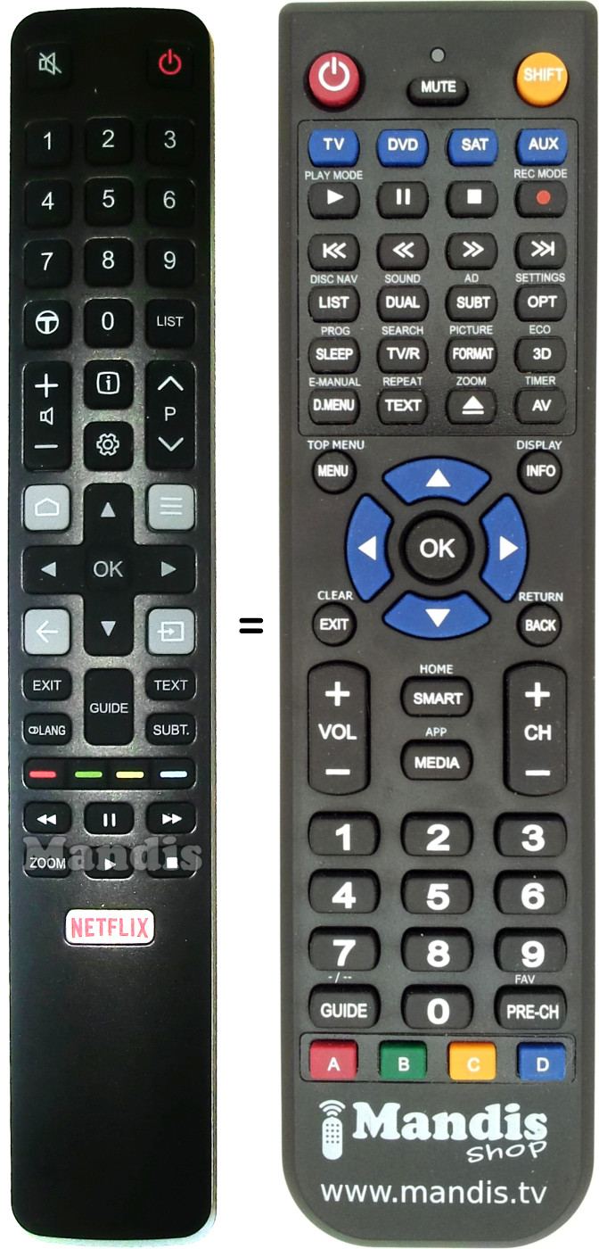 This remote control fully replaces your RC802N (04TCLTEL0252) and offers all the functions of the original.