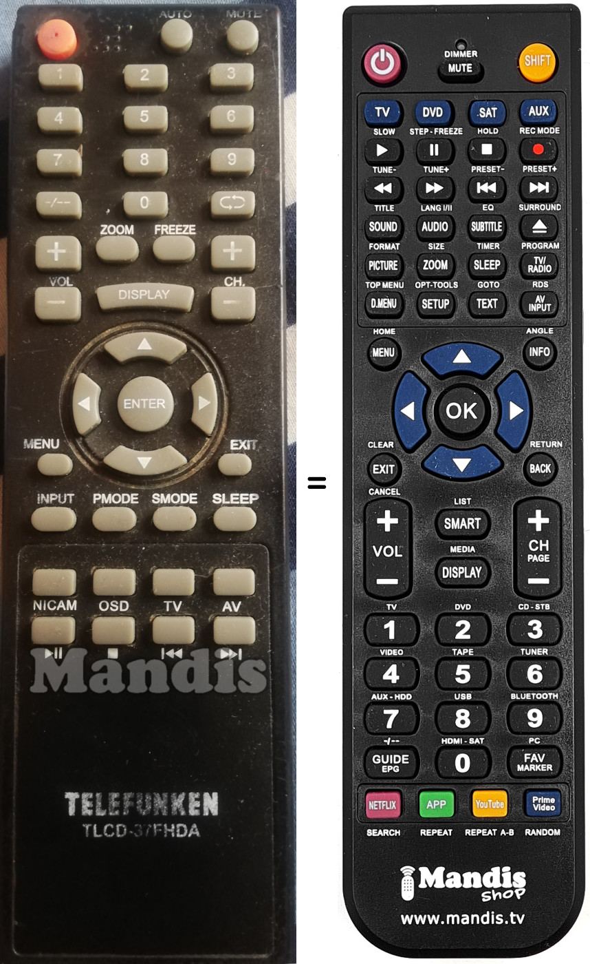 Remote control to replace the original and all its functions.