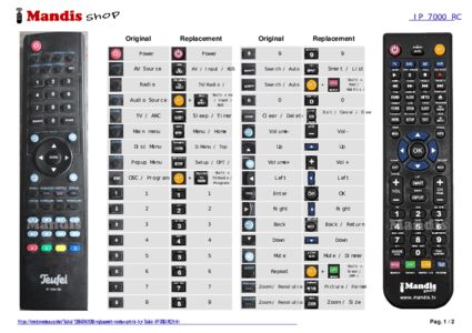 Below, we will show you the correspondence between each button on the original remote control and the button that performs the same function on the replacement remote control. In some cases, you may need to press the SHIFT key before pressing another button to perform certain actions. These additional functions are often not widely used and are included to facilitate understanding of the replacement remote control, or because the original remote control has more buttons than its equivalent.