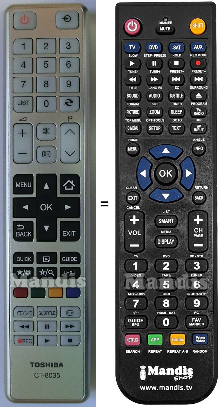 This remote control fully replaces your CT-8035 (75037328) and offers all the functions of the original.