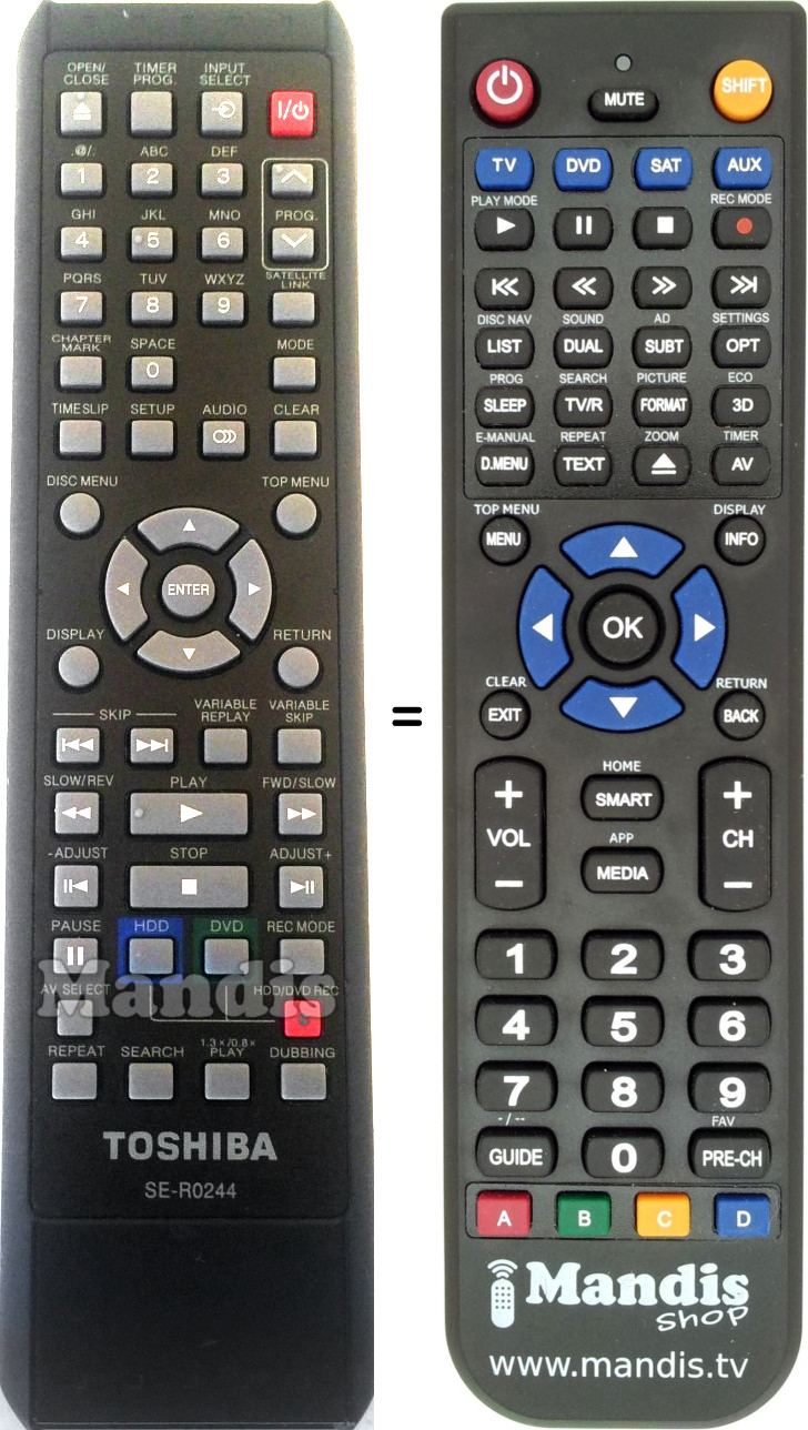 Below, we will show you the correspondence between each button on the original remote control and the button that performs the same function on the replacement remote control. In some cases, you may need to press the SHIFT key before pressing another button to perform certain actions. These additional functions are often not widely used and are included to facilitate understanding of the replacement remote control, or because the original remote control has more buttons than its equivalent.