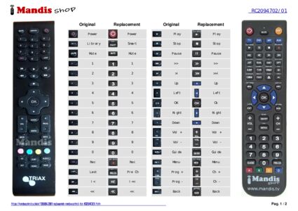 Below, we will show you the correspondence between each button on the original remote control and the button that performs the same function on the replacement remote control. In some cases, you may need to press the SHIFT key before pressing another button to perform certain actions. These additional functions are often not widely used and are included to facilitate understanding of the replacement remote control, or because the original remote control has more buttons than its equivalent.