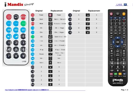 This remote control fully replaces your LY05 and offers all the functions of the original.
