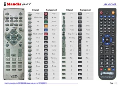Below, we will show you the correspondence between each button on the original remote control and the button that performs the same function on the replacement remote control. In some cases, you may need to press the SHIFT key before pressing another button to perform certain actions. These additional functions are often not widely used and are included to facilitate understanding of the replacement remote control, or because the original remote control has more buttons than its equivalent.