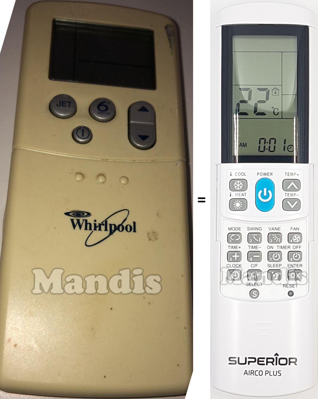 Home > Air conditioning brands > Whirlpool air conditioning remote controls > Universal remote control WHIRLPOOL Aircoplus (42530)